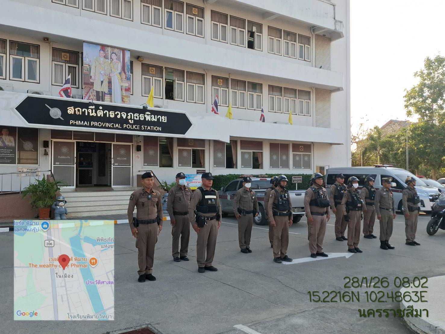 วันที่ 28 มกราคม พ.ศ. 2569 เวลา 08.00 น. พ.ต.อ.ถึงพร ปานทอง ผกก.สภ.พิมาย, พ.ต.ท.ประเสริฐ ฟุ้งพิ