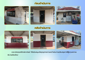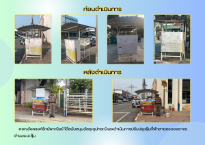 1.) สนับสนุนวัสดุ/อุปกรณ์ และดำเนินการปรับปรุงทาสีตู้ยามจราจรพิมายเมืองใหม่ และซ่อมแซมซุ้มที่พักสายตรวจจราจร จำนวน 4 ซุ้ม