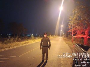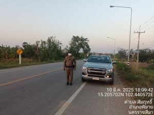 3.) สายตรวจจราจร ออกตรวจตราโดยเปิดสัญญาณไฟวับวาบ ตรวจสอบรถบรรทุกอ้อยจอดเสียหรือจอดซ่อมในเส้นทาง เพื่อป้องกันการเกิดอุบัติเหตุจราจร บริเวณถนนพิมาย-หินดาด/ถนนแยกโรงงานน้ำตาล ถึงโรงงานน้ำตาล