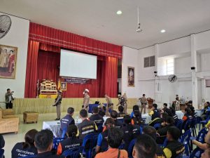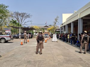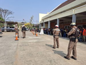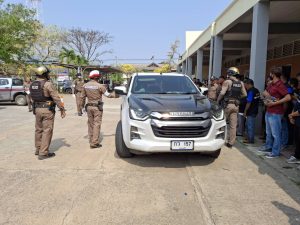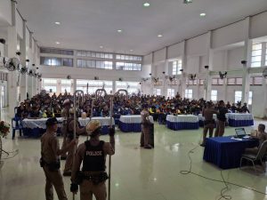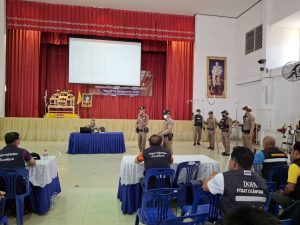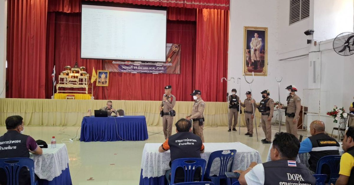 วันที่ 19 มีนาคม พ.ศ. 2568 เวลา 13.00 น. พ.ต.อ.สิทธิศักดิ์ พรหมหมื่นไวย ผกก.สภ.พิมาย มอบหมายให้ พ.ต.ท.ประเสริฐ ฟุ้งพิมาย รอง ผกก.ป.สภ.พิมาย, พ.ต.ต.พิสาร ทองสมุทร สวป.(ชส.)สภ.พิมาย, ร.ต.อ.สุพรรณโรจน์ อิ่มวิเศษ รอง สวป.สภ.พิมาย (ร้อยเวรจราจร), ร.ต.อ.พิเชษฐ์ ฉวีกลาง รอง สวป.สภ.พิมาย (ร้อยเวรป้องกันปราบปราม) พร้อมด้วยเจ้าหน้าที่สายตรวจรถยนต์/รถจักรยานยนต์ และสายตรวจจราจร ร่วมเป็นวิทยากรอบรมให้ความรู้ พร้อมทั้งสาธิตยุทธวิธีการใช้อุปกรณ์ไม้ง่ามเพื่อเข้าระงับเหตุบุคคลคลุ้มคลั่ง และการตั้งจุดตรวจ/จุดสกัด เพื่อตรวจค้นบุคคลและยานพาหนะ ตาม “โครงการฝึกอบรมจัดตั้งชุดรักษาความปลอดภัยหมู่บ้าน(ชรบ.)” ณ บริเวณหอประชุมอำเภอพิมาย ต.ในเมือง อ.พิมาย จ.นครราชสีมา