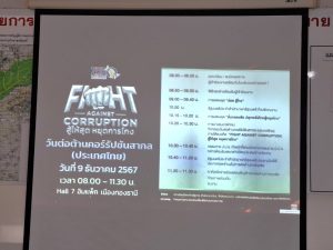 วันที่ 9 ธันวาคม พ.ศ. 2567 เวลา 08.00 น. พ.ต.อ.สิทธิศักดิ์ พรหมหมื่นไวย ผกก.สภ.พิมาย มอบหมายให้ พ.ต.ท.ประยูร ศรีอินทร์ สว.อก.สภ.พิมาย พร้อมด้วยข้าราชการตำรวจ สภ.พิมาย ร่วมเฝ้ารับชมการดำเนินกิจกรรมงานวันต่อต้านคอร์รัปชันสากล(ประเทศไทย) “สู้ให้สุด หยุดการโกง” ของสำนักงาน ป.ป.ช. ผ่านช่องทาง youtube ณ ห้องประชุม ศปก.สภ.พิมาย