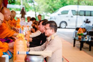เวลา 10.30 น. พิธีเจริญพระพุทธมนต์ และถวายภัตตาหารเพลแด่พระสงฆ์ และรับประทานอาหารร่วมกัน