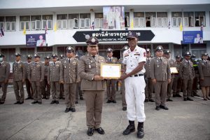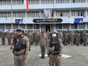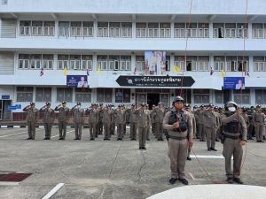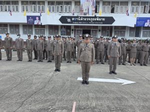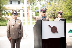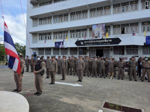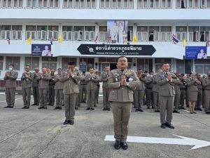 เวลา 08.00 น. ร่วมเคารพธงชาติ, สวดมนต์ไหว้พระ, กล่าวอุดมคติตำรวจ, ปฏิญาณตน และ อ่านสารของ ผบ.ตร.