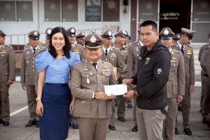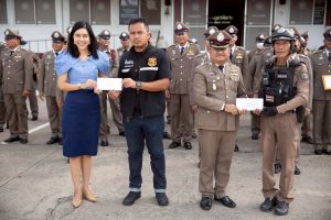 เวลา 10.00 น. พ.ต.อ.สิทธิศักดิ์ พรหมหมื่นไวย ผกก.สภ.พิมาย พร้อมด้วย ผศ.ดร.ธนพร พยอมใหม่(ภรรยา), พ.ต.ท.วิทยา บุญวัน รอง ผกก.(สอบสวน)ฯ, พ.ต.ท.ประเสริฐ ฟุ้งพิมาย รอง ผกก.ป.ฯ, พ.ต.ท.ภครัช สายสมบูรณ์ รอง ผกก.สส.ฯ, คุณศิวาพร ศรีตระกูล และ คุณเสรีภาพ ศรีตระกูล ผู้บริหาร บ.นิวมอเตอร์ไบค์ จำกัด ร่วมมอบทุนการศึกษาให้แก่บุตร ธิดา ของข้าราชการตำรวจในสังกัด