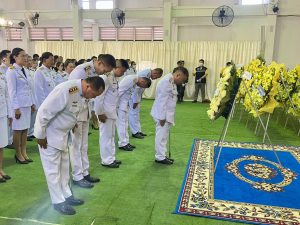 วันที่ 13 ตุลาคม พ.ศ. 2567 เวลา 07.00 น. พ.ต.อ.สิทธิศักดิ์ พรหมหมื่นไวย ผกก.สภ.พิมาย, พ.ต.ท.ประเสริฐ ฟุ้งพิมาย รอง ผกก.ป.สภ.พิมาย พร้อมด้วยข้าราชการตำรวจ สภ.พิมาย ร่วมพิธีสวดพระพุทธมนต์ ถวายจตุปัจจัยเครื่องไทยธรรม, พิธีทำบุญตักบาตรข้าวสารอาหารแห้ง และพิธีวางพวงมาลาถวายเป็นพระราชกุศล เนื่องในโอกาส วันนวมินทรมหาราช หรือวันคล้ายวันสวรรคตของพระบาทสมเด็จพระบรมชนกาธิเบศร มหาภูมิพลอดุลยเดชมหาราช บรมนาถบพิตร พระมหากษัตริย์รัชกาลที่ 9 โดยมี พระครูสุตธรรมวิสิฐ ดร.(มนัสชัย เมตตจิตโต) เจ้าคณะอำเภอพิมาย เจ้าอาวาสวัดวิปัสสนารังกาใหญ่ เป็นประธานฝ่ายสงฆ์ และ นายศิวะเสก สินโทรัมย์ นายอำเภอพิมาย เป็นประธานฝ่ายฆารวาส ณ หอประชุมอำเภอพิมาย ต.ในเมือง อ.พิมาย จว.นครราชสีมา