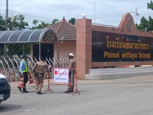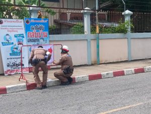 วันที่ 5 พฤศจิกายน พ.ศ. 2568 พ.ต.อ.สิทธิศักดิ์ พรหมหมื่นไวย ผกก.สภ.พิมาย มอบหมายให้ พ.ต.ท.ประเสริฐ ฟุ้งพิมาย รอง ผกก.ป.สภ.พิมาย, พ.ต.ต.พิทยา การสร้าง สวป.สภ.พิมาย พร้อมด้วยเจ้าหน้าที่สายตรวจจราจร ดำเนินการติดตั้งป้ายประชาสัมพันธ์ต่างๆ เพื่อช่วยอำนวยความสะดวกให้แก่ประชาชนที่จะเดินทางมาท่องเที่ยวในเทศกาลเที่ยวพิมายและการแข่งขันเรือยาวชิงถ้วยพระราชทานฯ ประจำปี 2568 ระหว่างวันที่ 5 – 9 พฤศจิกายน 2568 เพื่อให้ทราบถึงเส้นทางการเดินรถ และพื้นที่ในการจอดรถยนต์/รถจักรยานยนต์