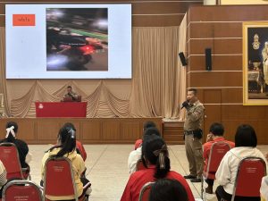 วันที่ 9 ธันวาคม พ.ศ. 2568 เวลา 10.00 น. ภายใต้การอำนวยการของ พ.ต.อ.ถึงพร ปานทอง ผกก.สภ.พิมาย, พ.ต.ท.ประเสริฐ ฟุ้งพิมาย รอง ผกก.ป.สภ.พิมาย มอบหมายให้ ร.ต.อ.บดินทร์เดช เนตรวิเศษ รอง สว.(จร.)สภ.พิมาย ปฏิบัติหน้าที่ร้อยเวรจราจร พร้อมด้วยเจ้าหน้าที่จราจร สภ.พิมาย ร่วมเป็นวิทยากรอบรมให้ความรู้แก่นักเรียนโรงเรียนพิมายวิทยา เกี่ยวกับกฎหมายที่เกี่ยวข้องกับการขับขี่อย่างปลอดภัย (กฎหมายว่าด้วยรถยนต์ กฎหมายว่าด้วยทางหลวง และกฎหมายว่าด้วยการจราจรทางบก) ตาม “โครงการนักเรียนรุ่นใหม่มีใบขับขี่” ณ หอประชุมโรงเรียนพิมายวิทยา ต.ในเมือง อ.พิมาย จ.นครราชสีมา