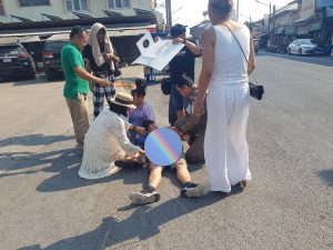 วันที่ 30 มกราคม พ.ศ.2567 เวลา 11.00 น. ร.ต.ท.เสริมเกียรติ ทิมกระโทก รอง สว.(จร.)สภ.พิมาย พร้อมด้วย ส.ต.ต.พัฒนพงษ์ หลุ่งเป้า ผบ.หมู่(ผช.พงส.)สภ.พิมาย ปฏิบัติหน้าที่สายตรวจจราจร ได้ให้ความช่วยเหลือนักท่องเที่ยวเป็นลมหมดสติ บริเวณหน้าอุทยานประวัติศาสตร์พิมาย โดยได้ช่วยทำการปฐมพยาบาลเบื้องต้นจนอาการปลอดภัย และได้ประสานโรงพยาบาลพิมายมารับตัวเพื่อตรวจรักษาต่อไป