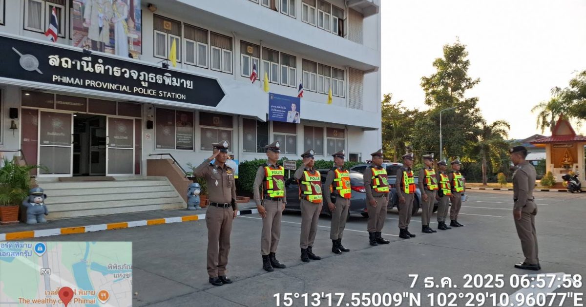 วันที่ 7 ธันวาคม พ.ศ. 2568 เวลา 06.30 น. ภายใต้การอำนวยการของ พ.ต.อ.ถึงพร ปานทอง ผกก.สภ.พิมาย มอบหมายให้ พ.ต.ต.พิทยา การสร้าง สวป.สภ.พิมาย ประชุมแถวข้าราชการตำรวจ สภ.พิมาย เพื่อกำชับการปฏิบัติและตรวจความพร้อมของเครื่องแต่งกาย, ทรงผม และอุปกรณ์ต่างๆ ที่ใช้ในการปฏิบัติภารกิจถวายความปลอดภัยและอำนวยความสะดวกด้านการจราจรแด่ สมเด็จพระเจ้าน้องนางเธอ เจ้าฟ้าจุฬาภรณวลัยลักษณ์ อัครราชกุมารี กรมพระศรีสวางควัฒน วรขัตติยราชนารี โดยสนับสนุนการปฏิบัติรอบพระตำหนักทิพย์พิมาน ในพื้นที่ สภ.หมูสี ต.โป่งตาลอง อ.ปากช่อง จ.นครราชสีมา ห้วงตั้งแต่วันที่ 7 – 12 ธันวาคม พ.ศ. 2568