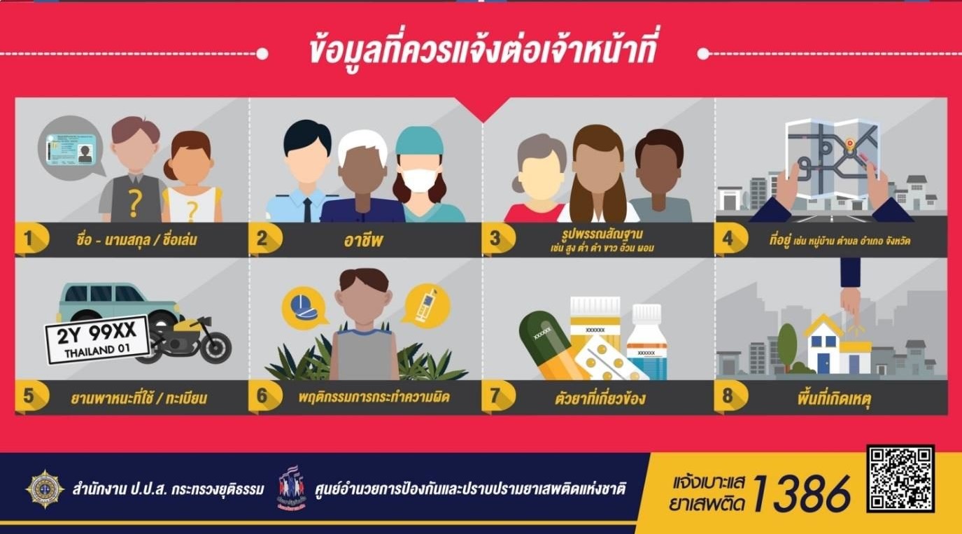 1. ประชาชนแจ้งข้อมูลเบาะแสยาเสพติดกับเจ้าหน้าที่ โดยมีข้อมูลดังนี้