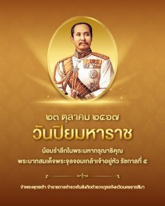 วันที่ 23 ตุลาคม พ.ศ. 2567 เวลา 07.00 น. พ.ต.อ.สิทธิศักดิ์ พรหมหมื่นไวย ผกก.สภ.พิมาย มอบหมายให้ พ.ต.ท.ประยูร ศรีอินทร์ สว.อก.สภ.พิมาย นำข้าราชการตำรวจในสังกัด ร่วมกับหน่วยงานราชการ/หน่วยงานรัฐวิสาหกิจ องค์กรเอกชน และภาคประชาชน ร่วมพิธีวางพวงมาลาเนื่องในวันคล้ายวันสวรรคตพระบาทสมเด็จพระจุลจอมเกล้าเจ้าอยู่หัว รัชกาลที่ 5 เพื่อน้อมรำลึกในพระมหากรุณาธิคุณเป็นล้นพ้นอันหาที่สุดมิได้ ที่ได้ทรงบำเพ็ญพระราชกรณียกิจนานัปการมาโดยตลอดรัชสมัย ณ บริเวณลานหน้าพระบรมราชานุสาวรีย์ พระบาทสมเด็จพระจุลจอมเกล้าเจ้าอยู่หัว ที่ว่าการอำเภอพิมาย จังหวัดนครราชสีมา โดยมี นายศิวะเสก สินโทรัมย์ นายอำเภอพิมาย เป็นประธานในพิธี