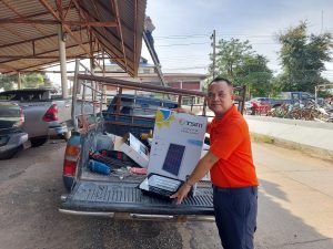 วันที่ 30 พฤศจิกายน พ.ศ.2566 พ.ต.อ.สิทธิศักดิ์ พรหมหมื่นไวย ผกก.สภ.พิมาย ได้ใช้งบประมาณส่วนตัวจัดซื้อโคมไฟสปอร์ตไลท์โซล่าเซลล์ ขนาด 200 วัตต์ จำนวน 4 ชุด เป็นเงินทั้งสิ้น 7,400 บาท โดยมอบหมายให้ พ.ต.ท.ประยูร ศรีอินทร์ สว.อก.สภ.พิมาย ดำเนินการติดตั้งในบริเวณพื้นที่จัดเก็บรถจักรยานยนต์/รถยนต์ของกลาง เพื่อเพิ่มแสงสว่างในเวลากลางคืนและเพิ่มความปลอดภัยให้กับทรัพย์สินของทางราชการ/รถยนต์, รถจักรยานยนต์ของกลาง รวมทั้งเพื่อช่วยลดการใช้ไฟฟ้าของโรงพักลงด้วย
