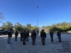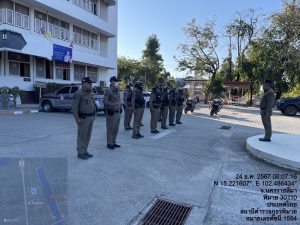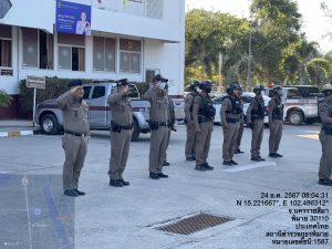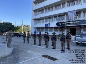 วันที่ 24 ธันวาคม พ.ศ. 2567 เวลา 08.00 น. พ.ต.อ.สิทธิศักดิ์ พรหมหมื่นไวย ผกก.สภ.พิมาย พร้อมด้วย พ.ต.ท.ประเสริฐ ฟุ้งพิมาย รอง ผกก.ป.สภ.พิมาย นำข้าราชการตำรวจ สภ.พิมาย ร่วมเข้าแถวเคารพธงชาติ, สวดมนต์ไหว้พระ และได้กำชับการปฏิบัติหน้าที่ราชการ ดังนี้