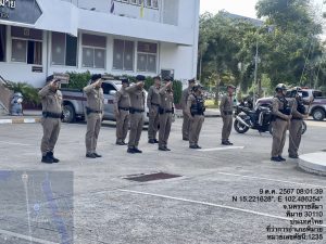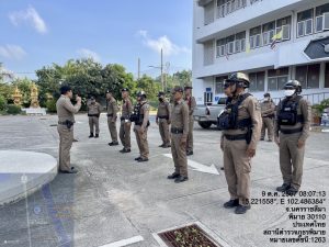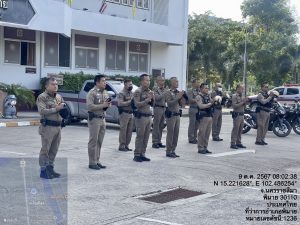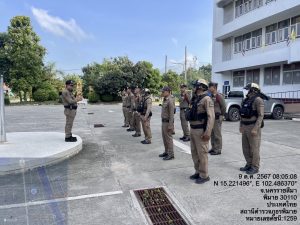 วันที่ 9 ตุลาคม พ.ศ. 2567 เวลา 08.00 น. พ.ต.อ.สิทธิศักดิ์ พรหมหมื่นไวย ผกก.สภ.พิมาย พร้อมด้วย พ.ต.ท.ประเสริฐ ฟุ้งพิมาย รอง ผกก.ป.สภ.พิมาย, พ.ต.ต.พิทยา การสร้าง สวป.สภ.พิมาย นำข้าราชการตำรวจ สภ.พิมาย ร่วมเข้าแถวเคารพธงชาติ, สวดมนต์ไหว้พระ และได้กำชับการปฏิบัติหน้าที่ราชการ ดังนี้