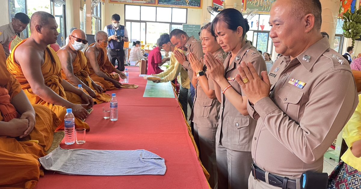 วันที่ 8 พฤศจิกายน พ.ศ.2566 เวลา 10.00 น. พ.ต.อ.สิทธิศักดิ์ พรหมหมื่นไวย ผกก.สภ.พิมาย พร้อมด้วย พ.ต.ท.ประยูร ศรีอินทร์ สว.อก.สภ.พิมาย นำข้าราชการตำรวจ สภ.พิมาย ร่วมทำบุญในพิธีทอดกฐินสามัคคีประจำปี 2566 โดย บริษัท เกลือพิมาย จำกัด ณ วัดบ้านท่าแดง ต.สัมฤทธิ์ อ.พิมาย จ.นครราชสีมา ซึ่งมี คุณอรุณ อินเจริญศักดิ์ ประธานเจ้าหน้าที่ฝ่ายปฏิบัติการ บริษัทเกลือพิมาย จำกัด เป็นประธานในพิธีฯ ครั้งนี้