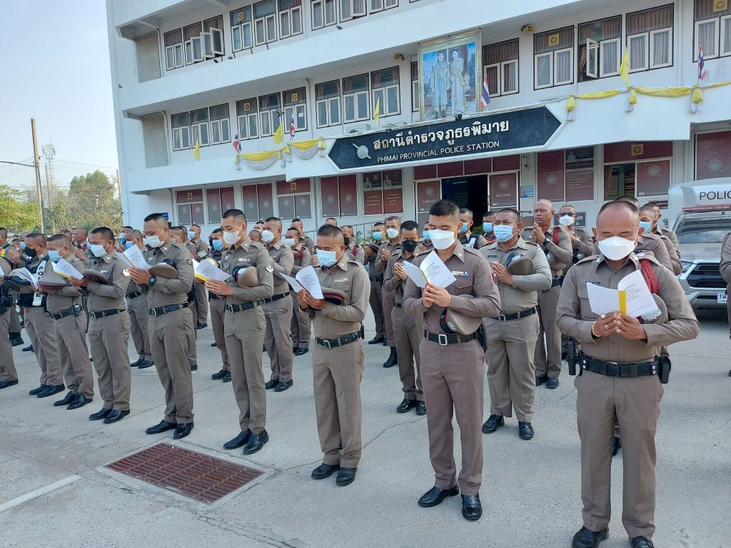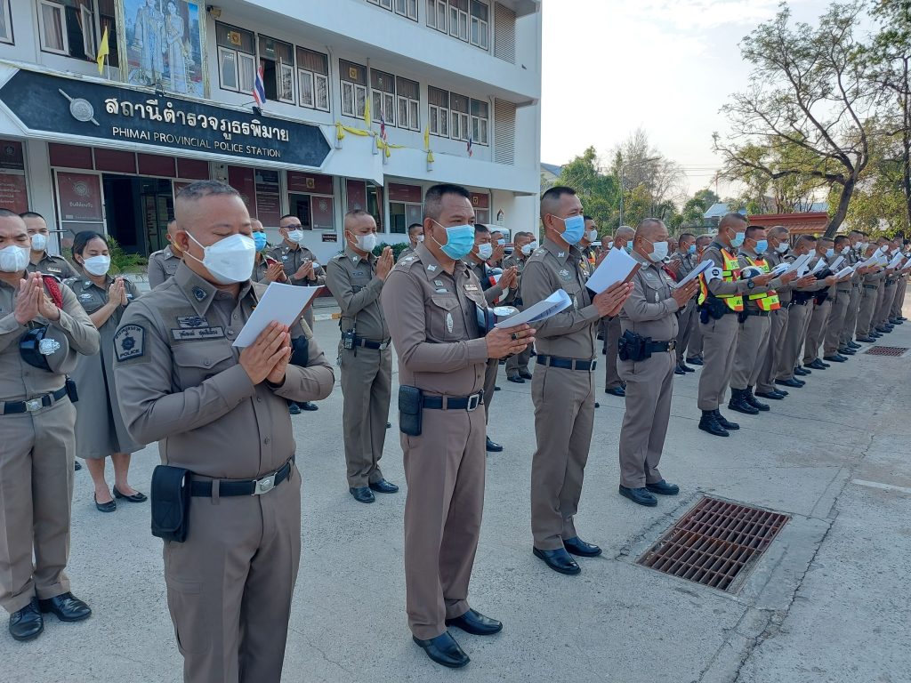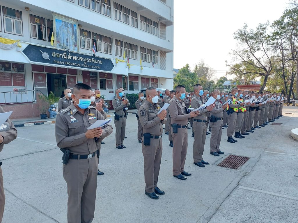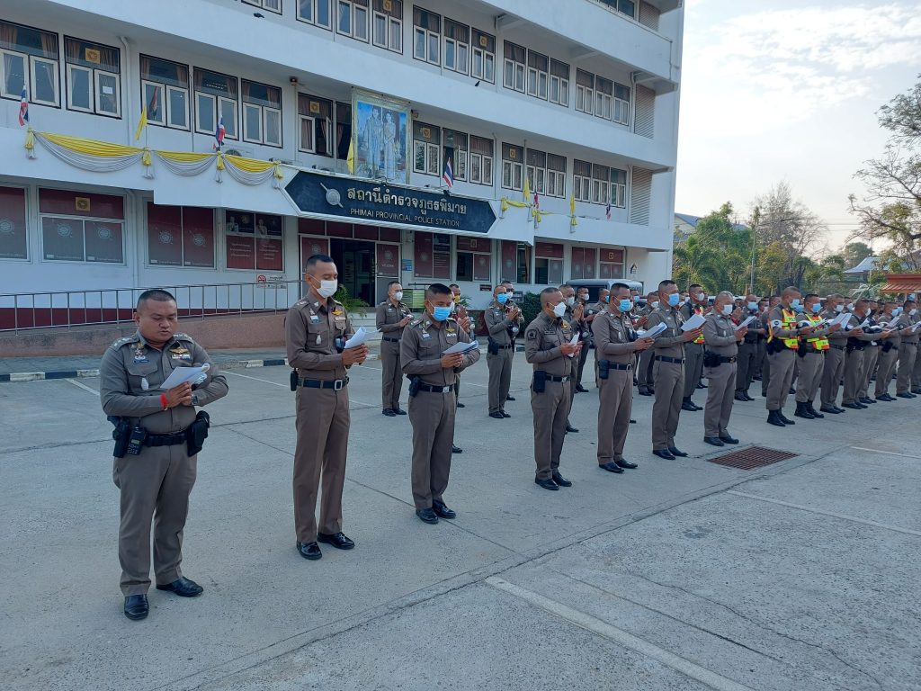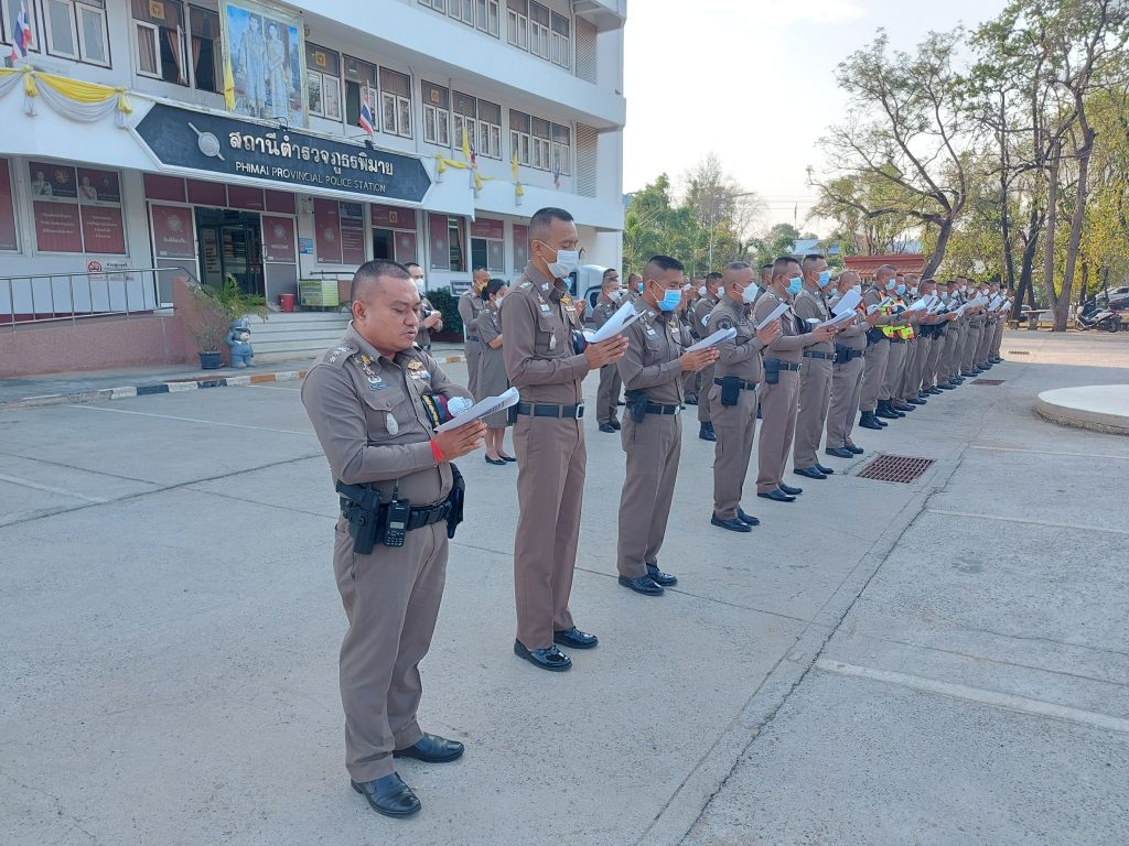 ผกก.สภ.พิมาย นำข้าราชการตำรวจร่วมเข้าแถวเคารพธงชาติและประชุมชี้แจงข้อราชการประจำเดือน กุมภาพันธ์ 2566 6 กุมภาพันธ์ 2566 โดย admin / ข่าวภารกิจผู้บังคับบัญชา วันที่ 6 กุมภาพันธ์ พ.ศ.2566 เวลา 08.00 น. พ.ต.อ.สิทธิศักดิ์ พรหมหมื่นไวย ผกก.สภ.พิมาย นำข้าราชการตำรวจ สภ.พิมาย ร่วมเข้าแถวเคารพธงชาติ, สวดมนต์ไหว้พระ และได้ตรวจความพร้อมของเครื่องแต่งกาย, ทรงผม ให้ถูกต้องตามระเบียบ และได้ประชุมชี้แจงข้อราชการ, ข้อสั่งการของผู้บังคับบัญชา ให้ได้รับทราบเพื่อถือนำไปปฏิบัติอย่างเคร่งครัด และได้นำข้าราชการตำรวจ สวดมนต์ถวายพระพรชัยแด่ สมเด็จพระเจ้าลูกเธอ เจ้าฟ้าพัชรกิติยาภา นเรนทิราเทพยวดี กรมหลวงราชสาริณีสิริพัชร มหาวัชรราชธิดา ขอให้ทรงหายจากพระอาการประชวร และมีพระพลานามัยแข็งแรงโดยเร็ววัน ณ บริเวณด้านหน้า สภ.พิมาย FacebookFacebookXXLINELine