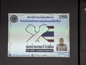 – อบรมเสริมสร้างค่านิยม องค์ความรู้ด้านคุณธรรม จริยธรรม เพื่อป้องกันและแก้ไขปัญหาการทุจริต คอร์รัปชั่น โดยกำชับให้ปฏิบัติหน้าที่ราชการตามกฎหมายอย่างเคร่งครัด ห้ามไม่ให้มีการเรียกรับทรัพย์สิน หรือผลประโยชน์อื่นใด เพื่อช่วยเหลือผู้กระทำความผิดโดยเด็ดขาด