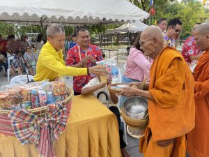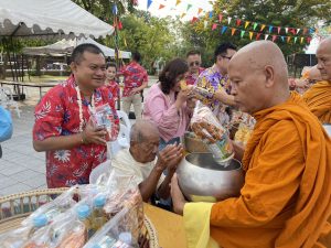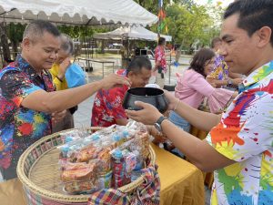 วันที่ 13 เมษายน พ.ศ. 2568 เวลา 07.00 น. พ.ต.อ.สิทธิศักดิ์ พรหมหมื่นไวย ผกก.สภ.พิมาย พร้อมด้วย พ.ต.ท.สุวกฤษฏิ์ พิมพ์จันทร์ สว.สส.สภ.พิมาย และ พ.ต.ต.พิสาร ทองสมุทร สวป.(ชส.)สภ.พิมาย ร่วมพิธีทำบุญตักบาตรข้าวสารอาหารแห้ง เนื่องในวันสงกรานต์ พ.ศ. 2568 ณ ลานพรหมทัต ต.ในเมือง อ.พิมาย จ.นครราชสีมา