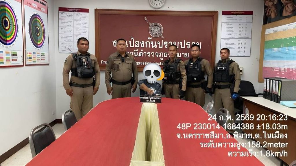 เจ้าหน้าที่ชุดจับกุม ได้แจ้งข้อกล่าวหาให้ผู้ต้องหาทราบแล้ว โดยได้ดำเนินการตาม พ.ร.บ.ป้องกันและปราบปรามการทรมานและการกระทำให้สูญหาย พ.ศ. 2565 และได้นำตัวผู้ต้องหาพร้อมของกลางส่งพนักงานสอบสวน สภ.พิมาย ดำเนินคดีตามกฎหมายต่อไป