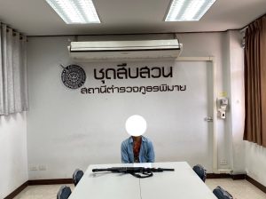 2.) จับกุมข้อหา “มีอาวุธปืนและเครื่องกระสุนปืนไว้ในครอบครองโดยไม่ได้รับอนุญาตจากนายทะเบียนท้องที่” จำนวน 1 ราย/ผู้ต้องหา 1 คน พร้อมด้วยของกลาง