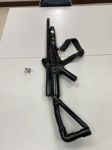 – อาวุธปืนยาวอัดก๊าซไทยประดิษฐ์ แบบปะจุปาก ไม่มีหมายเลขทะเบียน จำนวน 1 กระบอก