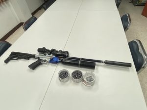 – อาวุธปืนอัดลมยาว ติดกล้องส่องทางไกล ไม่มีหมายเลขทะเบียน จำนวน 1 กระบอก