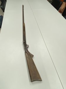 – อาวุธปืนแก๊ปขนาดยาวไทยประดิษฐ์ แบบปะจุปาก ไม่มีหมายเลขทะเบียน จำนวน 1 กระบอก