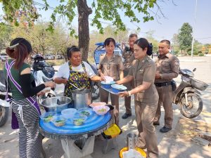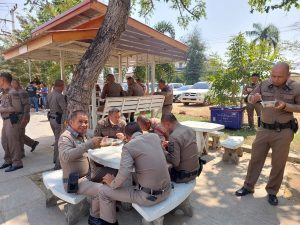 โดยหลังเสร็จสิ้นการประชุมได้รับประทานอาหารร่วมกับข้าราชการตำรวจตาม “โครงการอาหารกลางวันสำหรับข้าราชการตำรวจ” บริเวณศาลาที่พักด้านข้าง สภ.พิมาย