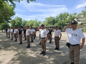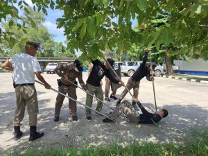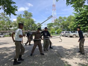 วันที่ 3 กรกฎาคม พ.ศ. 2567 เวลา 14.00 น. ภายใต้การอำนวยการของ พ.ต.อ.สิทธิศักดิ์ พรหมหมื่นไวย ผกก.สภ.พิมาย มอบหมายให้ พ.ต.ต.พิทยา การสร้าง สวป.สภ.พิมาย พร้อมด้วยคณะครูฝึกประจำสถานีตำรวจ นำข้าราชการตำรวจ สภ.พิมาย ร่วมฝึกประจำสัปดาห์ โดยได้ทำการฝึกท่าบุคคลมือเปล่า และยุทธวิธีการใช้ไม้ง่ามเพื่อจับกุมคนร้ายหรือบุคคลคลุ้มคลั่ง ณ บริเวณลานด้านข้างที่ว่าการอำเภอพิมาย
