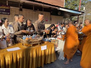 วันที่ 1 มกราคม พ.ศ. 2569 เวลา 07.30 น. พ.ต.อ.ถึงพร ปานทอง ผกก.สภ.พิมาย, ว่าที่ พ.ต.ต.ถนอมชัย พูนกล้า สว.อก.สภ.พิมาย, ร.ต.อ.สังวาลย์ สกุลฤทธิสิงห์ รอง สว.จร.สภ.พิมาย, ว่าที่ ร.ต.ท.กล้าหาญ บำรุงเทียน รอง สว.(สอบสวน)สภ.พิมาย, ข้าราชการตำรวจ สภ.พิมาย, คณะกรรมการ กต.ตร.สภ.พิมาย, หัวหน้าส่วนราชการ, ผู้บริหารส่วนท้องถิ่น, กำนัน/ผู้ใหญ่บ้าน และพ่อค้าประชาชนชาวอำเภอพิมาย ร่วมพิธีทำบุญตักบาตรเนื่องในวันขึ้นปีใหม่ 2569 ณ บริเวณถนนจอมสุดาเสด็จ หน้าอุทยานประวัติศาสตร์พิมาย ต.ในเมือง อ.พิมาย จ.นครราชสีมา โดยมี นายศิวะเสก สินโทรัมย์ นายอำเภอพิมาย เป็นประธานในพิธี