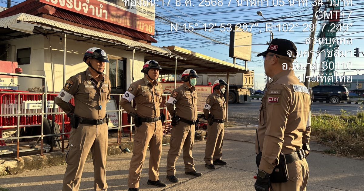 วันที่ 17 ธันวาคม พ.ศ. 2568 ร.ต.อ.บดินทร์เดช เนตรวิเศษ รอง สว.(จร.)สภ.พิมาย ปฏิบัติหน้าที่ร้อยเวรจราจร พร้อมด้วยเจ้าหน้าที่สายตรวจจราจร สภ.พิมาย ร่วมปฏิบัติหน้าที่อำนวยความสะดวกการจราจร และตรวจตราเพื่อรักษาความสงบเรียบร้อยในพื้นที่
