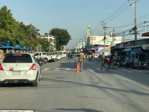 วันที่ 25 พฤศจิกายน พ.ศ. 2568 ร.ต.อ.บดินทร์เดช เนตรวิเศษ รอง สว.(จร.)สภ.พิมาย ปฏิบัติหน้าที่ร้อยเวรจราจร พร้อมด้วยเจ้าหน้าที่สายตรวจจราจร สภ.พิมาย ร่วมปฏิบัติหน้าที่อำนวยความสะดวกการจราจร และตรวจตราเพื่อรักษาความสงบเรียบร้อยในพื้นที่
