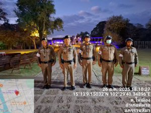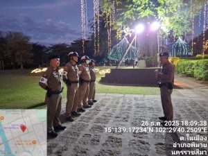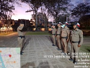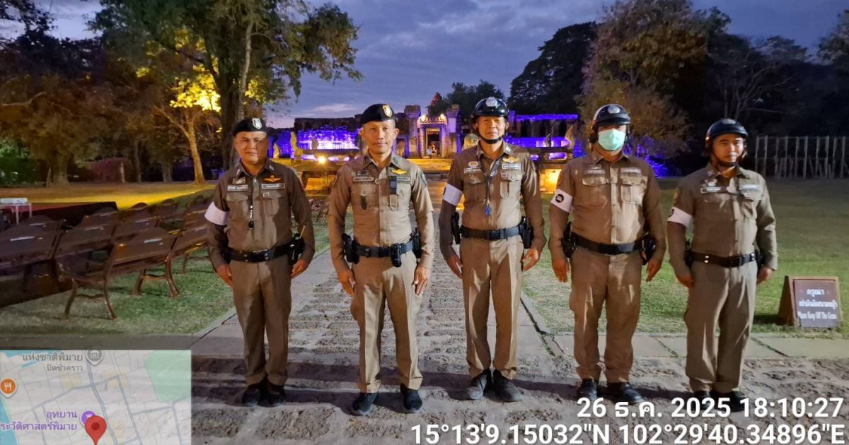 วันที่ 26 ธันวาคม พ.ศ. 2568 เวลา 18.00 น. ภายใต้การอำนวยการของ พ.ต.อ.ถึงพร ปานทอง ผกก.สภ.พิมาย, พ.ต.ท.ประเสริฐ ฟุ้งพิมาย รอง ผกก.ป.ฯ, มอบหมายให้ พ.ต.ท.พิทยา การสร้าง สวป.ฯ, พ.ต.ท.พิสาร ทองสมุทร สวป.(ชส.)ฯ พร้อมด้วยเจ้าหน้าที่สายตรวจจราจร ร่วมอำนวยความสะดวกการจราจรและรักษาความสงบเรียบร้อยการจัดกิจกรรม “Phimai Night Light Up 2025” ณ อุทยานประวัติศาสตร์พิมาย
