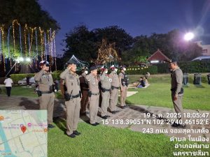 วันที่ 19 ธันวาคม พ.ศ. 2568 เวลา 18.00 น. ภายใต้การอำนวยการของ พ.ต.อ.ถึงพร ปานทอง ผกก.สภ.พิมาย มอบหมายให้ พ.ต.ท.ประเสริฐ ฟุ้งพิมาย รอง ผกก.ป.ฯ, พ.ต.ท.พิทยา การสร้าง สวป.ฯ, พ.ต.ท.พิสาร ทองสมุทร สวป.(ชส.)ฯ พร้อมด้วยเจ้าหน้าที่สายตรวจรถยนต์/รถจักรยานยนต์, สายตรวจจราจร ร่วมอำนวยความสะดวกการจราจรและรักษาความสงบเรียบร้อยการจัดกิจกรรม “Phimai Night Light Up 2025” ณ อุทยานประวัติศาสตร์พิมาย