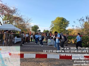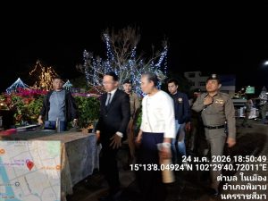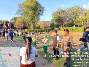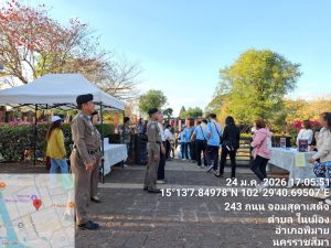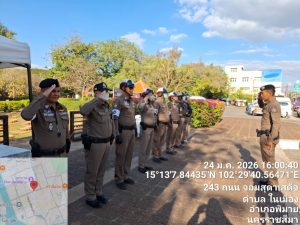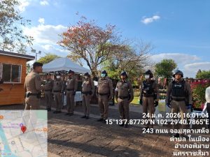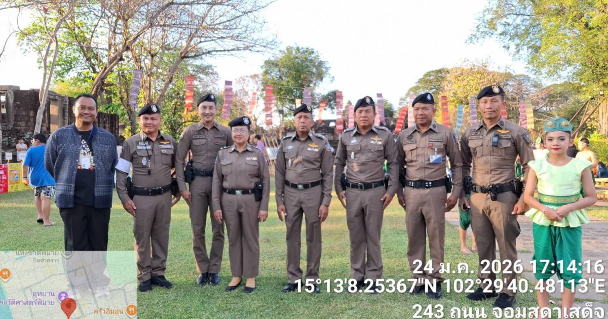 วันที่ 24 มกราคม พ.ศ. 2569 เวลา 16.00 น. พ.ต.อ.ถึงพร ปานทอง ผกก.สภ.พิมาย ได้มอบหมายให้ พ.ต.ท.ประเสริฐ ฟุ้งพิมาย รองผกก.ป.สภ.พิมาย, พ.ต.ท.พิทยา การสร้าง สวป.สภ.พิมาย พร้อมด้วยเจ้าหน้าที่ตำรวจ สภ.พิมาย ร่วมอำนวยความสะดวกการจราจร/รักษาความสงบเรียบร้อยให้แก่ นายคณัสชนม์ ศรีเจริญ รองผู้ว่าราชการจังหวัดนครราชสีมา และนักกีฬาจากประเทศสมาชิกอาเซียนที่มาเข้าร่วมแข่งขันกีฬา “อาเซียนพาราเกมส์ ครั้งที่ 13” ซึ่งได้เดินทางมาร่วมรับชมการแสดง แสง เสียง Mini Light & Sound Phimai : วิมายะนาฏการ ณ อุทยานประวัติศาสตร์พิมาย ต.ในเมือง อ.พิมาย จว.นครราชสีมา
