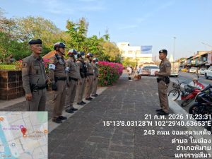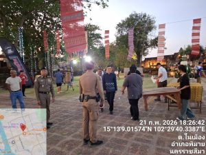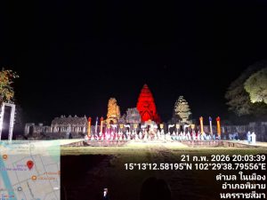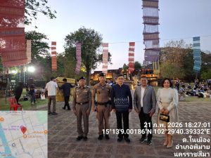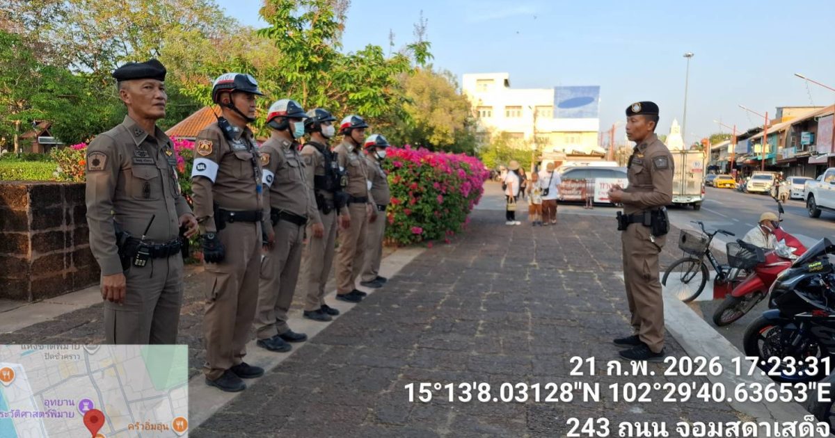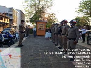 วันที่ 21 กุมภาพันธ์ พ.ศ. 2569 เวลา 16.00 น. พ.ต.อ.ถึงพร ปานทอง ผกก.สภ.พิมาย มอบหมายให้ พ.ต.ท.ประเสริฐ ฟุ้งพิมาย รองผกก.ป.สภ.พิมาย, พ.ต.ท.พิทยา การสร้าง สวป.สภ.พิมาย พร้อมด้วยเจ้าหน้าที่ตำรวจ สภ.พิมาย ร่วมอำนวยความสะดวกการจราจร/รักษาความสงบเรียบร้อยประกอบการแสดง แสง เสียง Mini Light & Sound Phimai ณ อุทยานประวัติศาสตร์พิมาย ต.ในเมือง อ.พิมาย จว.นครราชสีมา