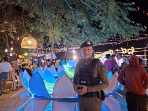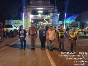 วันที่ 15 พฤศจิกายน พ.ศ. 2567 ภายใต้การอำนวยการของ พ.ต.อ.สิทธิศักดิ์ พรหมหมื่นไวย ผกก.สภ.พิมาย มอบหมายให้ พ.ต.ท.ประเสริฐ ฟุ้งพิมาย รอง ผกก.ป.ฯ, พ.ต.ท.ไพบูรณ์ คูณค้ำ รอง ผกก.สส.ฯ, พ.ต.ต.สุวกฤษฎิ์ พิมพ์จันทร์ สว.สส.ฯ, พ.ต.ต.พิทยา การสร้าง สวป.ฯ, พ.ต.ต.พิสาร ทองสมุทร สวป.(ชส.)ฯ, พร้อมด้วยเจ้าหน้าที่ตำรวจ สภ.พิมาย ร่วมรักษาความสงบเรียบร้อยและอำนวยความสะดวกการจราจร งานประเพณีลอยกระทงประจำปี พ.ศ.2567