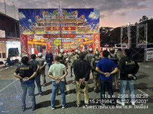 ทั้งนี้ได้ประชุมชี้แจงมอบหมายภารกิจและกำชับเจ้าหน้าที่ทุกนาย ให้ปฏิบัติตามมาตรการป้องกันและรักษาความสงบเรียบร้อยในงานมหรสพ หรืองานรื่นเริง อย่างเคร่งครัด