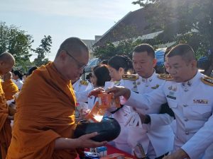 วันที่ 25 พฤศจิกายน พ.ศ. 2568 เวลา 07.00 น. พ.ต.อ.สิทธิศักดิ์ พรหมหมื่นไวย ผกก.สภ.พิมาย มอบหมายให้ พ.ต.ท.ภครัช สายสมบูรณ์ รอง ผกก.สส.สภ.พิมาย พร้อมข้าราชการตำรวจในสังกัด ร่วมกับหน่วยงานราชการ/หน่วยงานรัฐวิสาหกิจ องค์กรเอกชน และภาคประชาชน ร่วมพิธีทำบุญตักบาตรถวายเป็นพระราชกุศล, พิธีวางพานพุ่มดอกไม้ถวายสักการะเนื่องในกิจกรรมเฉลิมพระเกียรติพระบาทสมเด็จพระมงกุฎเกล้าเจ้าอยู่หัว เนื่องในโอกาสวันคล้ายวันสวรรคตครบ 100 ปี 25 พฤศจิกายน 2568 และเฉลิมพระเกียรติสมเด็จพระเจ้าภคินีเธอ เจ้าฟ้าเพชรรัตนราชสุดา สิริโสภาพัณณวดีเนื่องในโอกาสวันคล้ายวันประสูติครบ 100 ปี 24 พฤศจิกายน 2568 เพื่อน้อมรำลึกในพระมหากรุณาธิคุณเป็นล้นพ้นอันหาที่สุดมิได้ ที่ได้ทรงบำเพ็ญพระราชกรณียกิจนานัปการมาโดยตลอดรัชสมัย ณ หอประชุมที่ว่าการอำเภอพิมาย ต.ในเมือง อ.พิมาย จ.นครราชสีมา