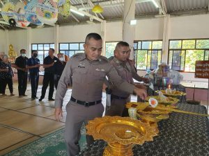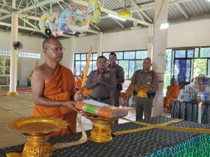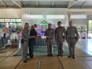 พร้อมกันนี้ พ.ต.อ.สิทธิศักดิ์ พรหมหมื่นไวย ผกก.สภ.พิมาย ได้เป็นตัวแทนของข้าราชการตำรวจ สภ.พิมาย มอบเงินสวัสดิการช่วยเหลือครอบครัวของข้าราชการตำรวจในสังกัด สภ.พิมาย ที่เสียชีวิต ให้แก่ ร.ต.ท.พิษณุ แจกกลาง ด้วย