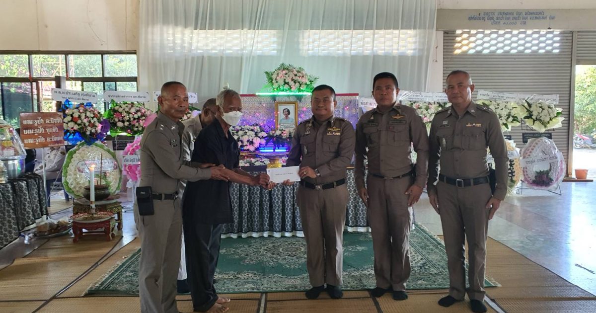 พร้อมกันนี้ พ.ต.อ.สิทธิศักดิ์ พรหมหมื่นไวย ผกก.สภ.พิมาย ได้เป็นตัวแทนของข้าราชการตำรวจ สภ.พิมาย มอบเงินสวัสดิการช่วยเหลือครอบครัวของข้าราชการตำรวจในสังกัด สภ.พิมาย ที่เสียชีวิต ให้แก่ ร.ต.ท.พิษณุ แจกกลาง ด้วย