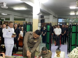 วันที่ 19 มีนาคม พ.ศ. 2569 เวลา 16.30 น. พ.ต.อ.ถึงพร ปานทอง ผกก.สภ.พิมาย พร้อมด้วย พ.ต.อ.สิทธิศักดิ์ พรหมหมื่นไวย ผกก.สภ.พระทองคำ, พ.ต.ท.วิทยา บุญวัน รอง ผกก.(สอบสวน)สภ.พิมาย, พ.ต.ท.ประเสริฐ ฟุ้งพิมาย รอง ผกก.ป.สภ.พิมาย และข้าราชการตำรวจ สภ.พิมาย ร่วมพิธีพระราชทานน้ำหลวงอาบศพ และร่วมเป็นเจ้าภาพในพิธีสวดพระอภิธรรมศพ ร.ต.อ.โกเมศ ปุกสันเทียะ รอง สว.(ป.)สภ.พิมาย ซึ่งได้เสียชีวิตลง เมื่อวันที่ 18 มีนาคม พ.ศ. 2569 ด้วยโรคประจำตัว ณ ศาลาการเปรียญวัดเดิม ต.ในเมือง อ.พิมาย จ.นครราชสีมา