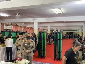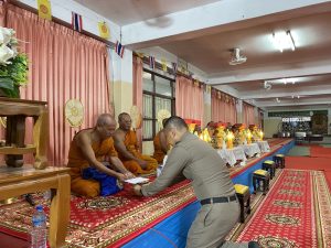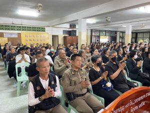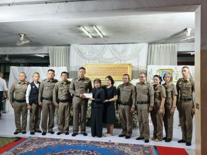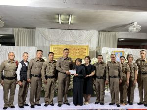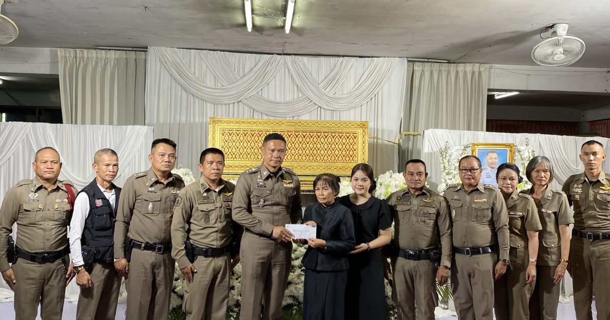 พร้อมกันนี้ พ.ต.อ.ถึงพร ปานทอง ผกก.สภ.พิมาย และข้าราชการตำรวจ สภ.พิมาย ได้ร่วมมอบเงิน “กองทุนช่วยเหลือข้าราชการตำรวจ บิดา, มารดา, ภรรยาและบุตรของข้าราชการตำรวจในสังกัด สภ.พิมาย” ให้แก่ภรรยาของ ร.ต.อ.โกเมศ ปุกสันเทียะ ด้วย