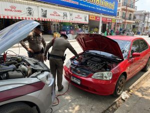 วันที่ 16 เมษายน พ.ศ.2567 เวลา 15.30 น. ร.ต.อ.อนุศิษฏิ์ เคล้ากระโทก รอง สวป.สภ.พิมาย พร้อมด้วยสายตรวจรถยนต์ ได้ออกตรวจตราพื้นที่ในเขตรับผิดชอบ พบประชาชนได้ขอความช่วยเหลือรถยนต์สตาร์ทเครื่องยนต์ไม่ติด บริเวณถนนอนันทจินดา ต.ในเมือง อ.พิมาย จ.นครราชสีมา จากการตรวจสอบพบว่าเกิดปัญหาเกี่ยวกับแบตเตอรี่ จึงได้ให้ความช่วยเหลือพ่วงแบตเตอรี่รถยนต์จนสามารถใช้งานและเดินทางต่อไปได้โดยปลอดภัย