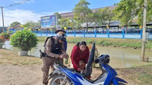 วันที่ 16 ธันวาคม พ.ศ. 2567 เวลา 09.30 น. ด.ต.เกียรตินิยม แสนละคร ผบ.หมู่(ป.)สภ.พิมาย พร้อมด้วย จ.ส.ต.นพดล วิเศษสุข ผบ.หมู่(ป.)สภ.พิมาย ปฏิบัติหน้าที่สายตรวจรถจักรยานยนต์ ออกตรวจตราเพื่อป้องกันเหตุในเขตพื้นที่รับผิดชอบ พบประชาชนขอความช่วยเหลือเนื่องจากรถจักรยานยนต์น้ำมันหมด บริเวณหน้าวิทยาลัยเทคนิคพิมาย ถ.พิมาย-ชุมพวง ต.ในเมือง อ.พิมาย จ.นครราชสีมา จึงได้ให้ความช่วยเหลือโดยไปซื้อน้ำมันมาเติมให้ จนสามารถเดินทางต่อไปได้อย่างปลอดภัย