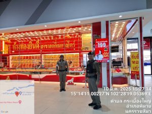 – ตรวจปั๊มน้ำมัน/ร้านทอง/ร้านสะดวกซื้อ(7-11)/ห้างเทสโก้โลตัสพิมาย/ห้างฮกกี่เมกาสโตร์/จุดเสี่ยง จุดล่อแหลมต่อการเกิดอาชญากรรม