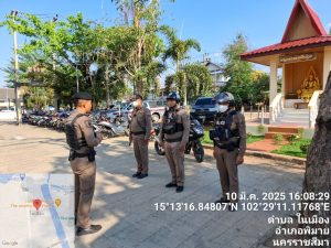 วันที่ 10 มีนาคม พ.ศ. 2568 เวลา 14.30 – 16.15 น. ภายใต้การอำนวยการของ พ.ต.อ.สิทธิศักดิ์ พรหมหมื่นไวย ผกก.สภ.พิมาย, พ.ต.ท.ประเสริฐ ฟุ้งพิมาย รอง ผกก.ป.สภ.พิมาย มอบหมายให้ พ.ต.ต.พิทยา การสร้าง สวป.สภ.พิมาย พร้อมด้วยสายตรวจรถยนต์/สายตรวจจราจร ร่วมตรวจตราเพื่อป้องกันปราบปรามอาชญากรรมในพื้นที่รับผิดชอบ ดังนี้
