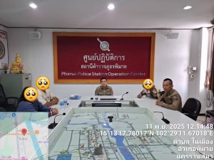 วันที่ 11 พฤศจิกายน พ.ศ. 2568 เวลา 08.00 – 16.00 น. ภายใต้การอำนวยการของ พ.ต.อ.สิทธิศักดิ์ พรหมหมื่นไวย ผกก.สภ.พิมาย มอบหมายให้ พ.ต.ท.ประเสริฐ ฟุ้งพิมาย รอง ผกก.ป.สภ.พิมาย, พ.ต.ต.พิทยา การสร้าง สวป.สภ.พิมาย พร้อมด้วยสายตรวจรถยนต์/สายตรวจจราจร ร่วมตรวจตราเพื่อป้องกันปราบปรามอาชญากรรมในพื้นที่รับผิดชอบ ดังนี้