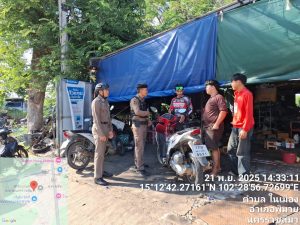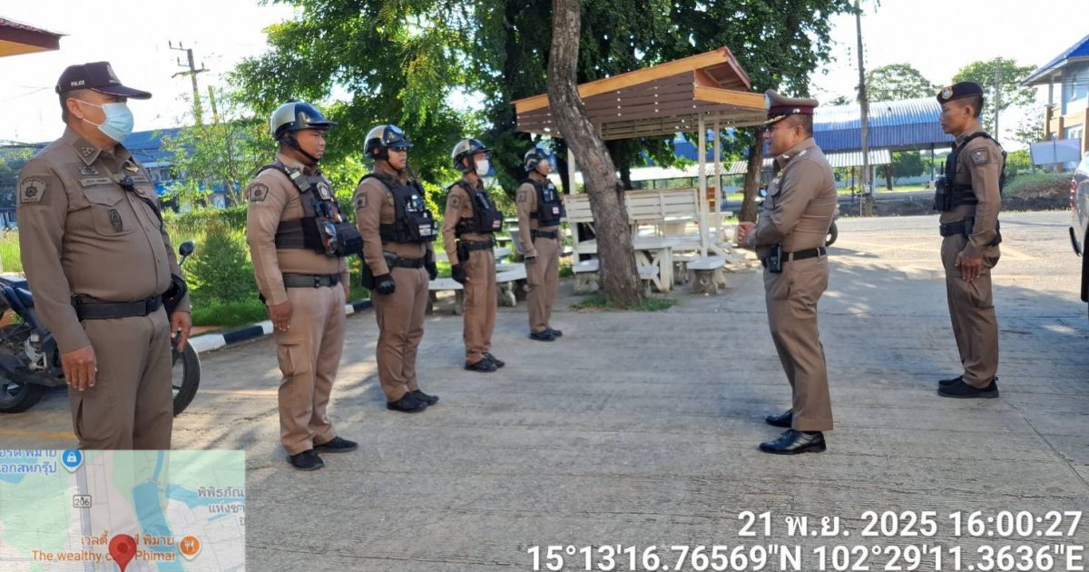 วันที่ 21 พฤศจิกายน พ.ศ. 2568 เวลา 13.30 – 16.00 น. พ.ต.ต.พิทยา การสร้าง สวป.สภ.พิมาย พร้อมด้วยสายตรวจรถยนต์/สายตรวจจราจร ร่วมตรวจตราเพื่อป้องกันปราบปรามอาชญากรรมในพื้นที่รับผิดชอบ ดังนี้