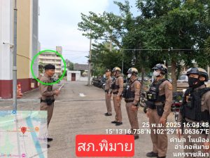 วันที่ 25 พฤศจิกายน พ.ศ. 2568 เวลา 11.00 – 16.00 น. ภายใต้การอำนวยการของ พ.ต.อ.สิทธิศักดิ์ พรหมหมื่นไวย ผกก.สภ.พิมาย, พ.ต.ท.ประเสริฐ ฟุ้งพิมาย รอง ผกก.ป.สภ.พิมาย มอบหมายให้ พ.ต.ต.พิทยา การสร้าง สวป.สภ.พิมาย พร้อมด้วยสายตรวจรถยนต์/สายตรวจจราจร ร่วมตรวจตราเพื่อป้องกันปราบปรามอาชญากรรมในพื้นที่รับผิดชอบ ดังนี้